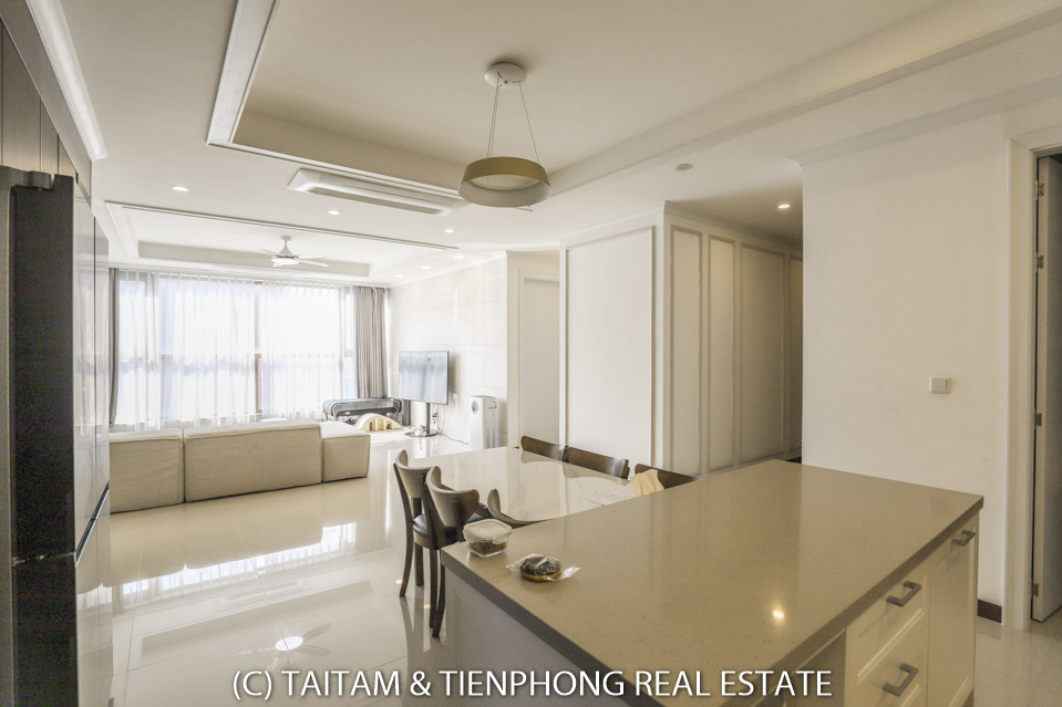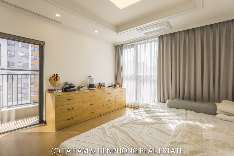 This apartment is located in Starlake Ho Tay. It is on high floor with open views, the total living area is 177 sqm, designed with 4 bedrooms, 3 bathrooms, all rooms are full of natural light with large windows. The living room is comfortably furnished, combined with dining area. The kitchen is equipped with an electric cook, refrigerator, microwave, kettle,etc