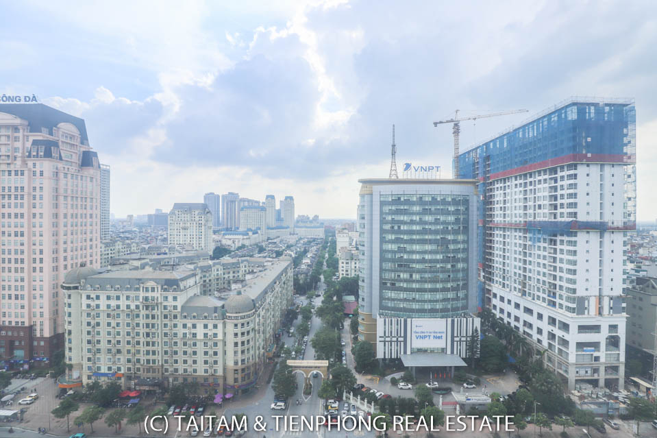 City view 2 bedroom apartment for rent in S2 tower Vinhomes Skylake. Features: 78m sq, 2 bedrooms, 2 bathrooms, living room, kitchen, dining area, balcony with view to the city. Location: high floor, S2 building, Vinhomes Skylake, Cay Giay, Hanoi.