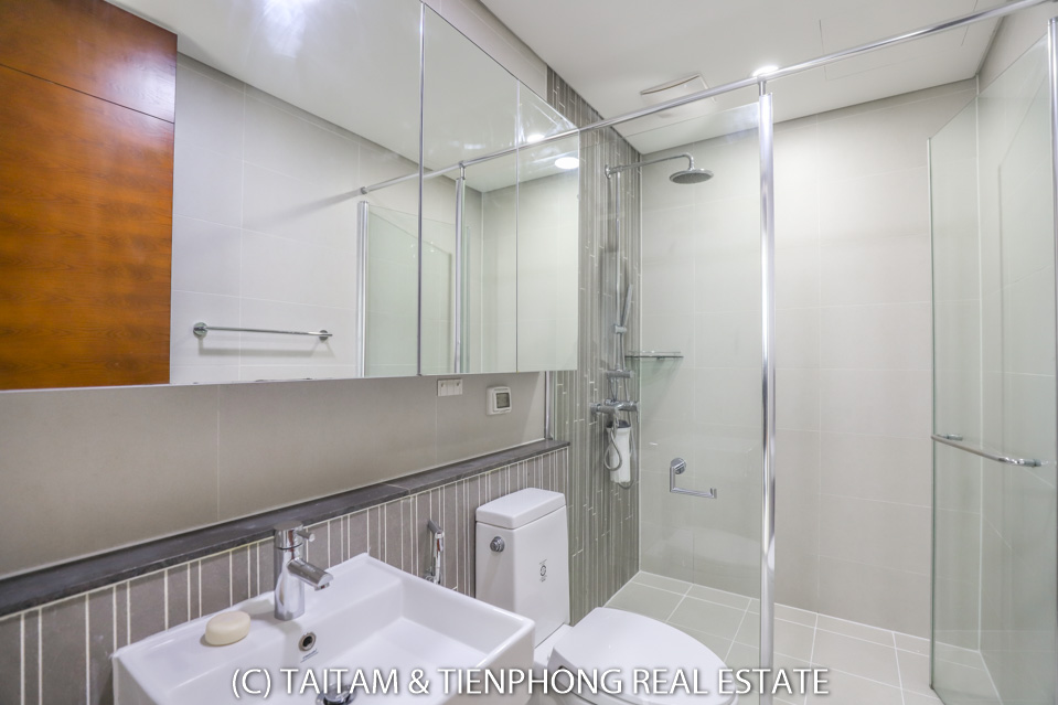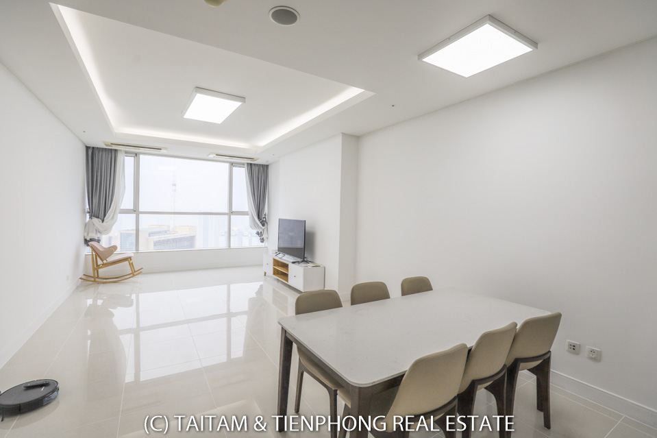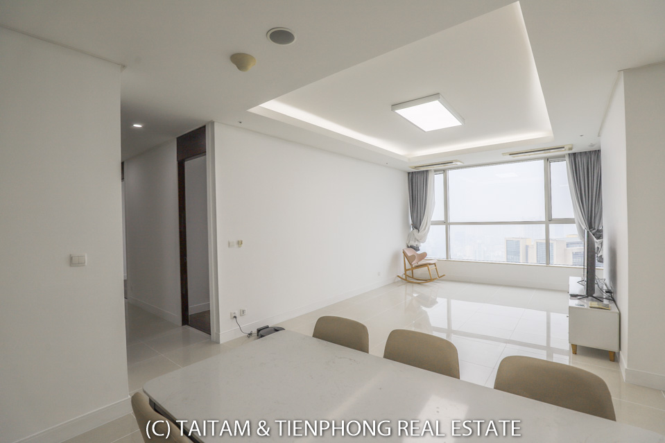 A spacious and furnished apartment, located on a high level in Keangnam building, Hanoi. The size apartment is 156 sq m, include and open plan living room combined with dining area, an open kitchen, 03 bedrooms, balconies, nice wooden floor, well equipped and decorated. The apartment is at the corner position in the building; thus it is open, airy and light.