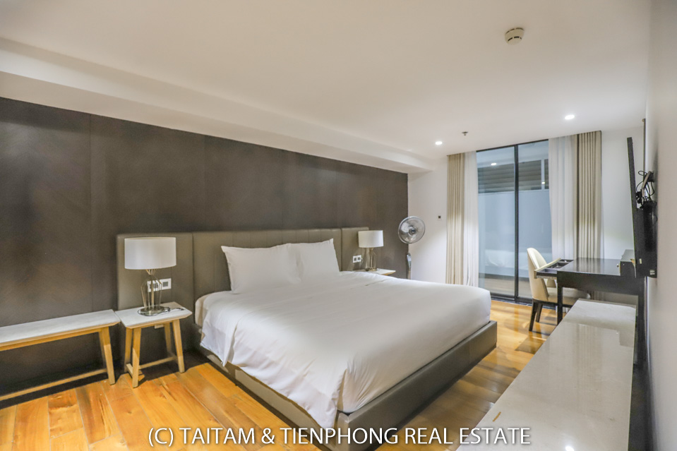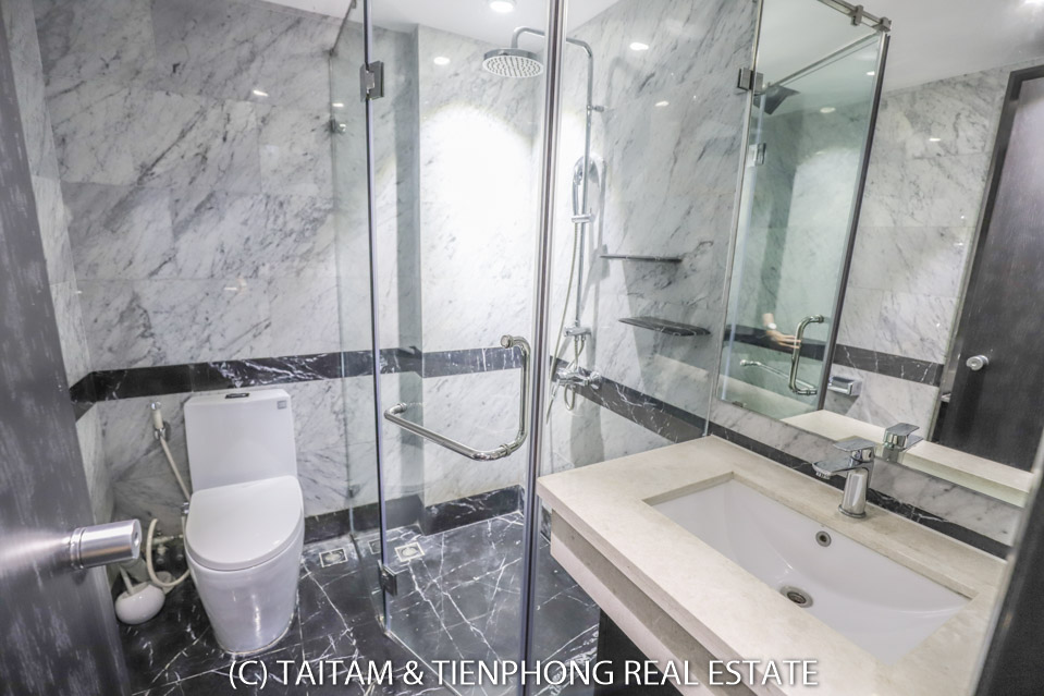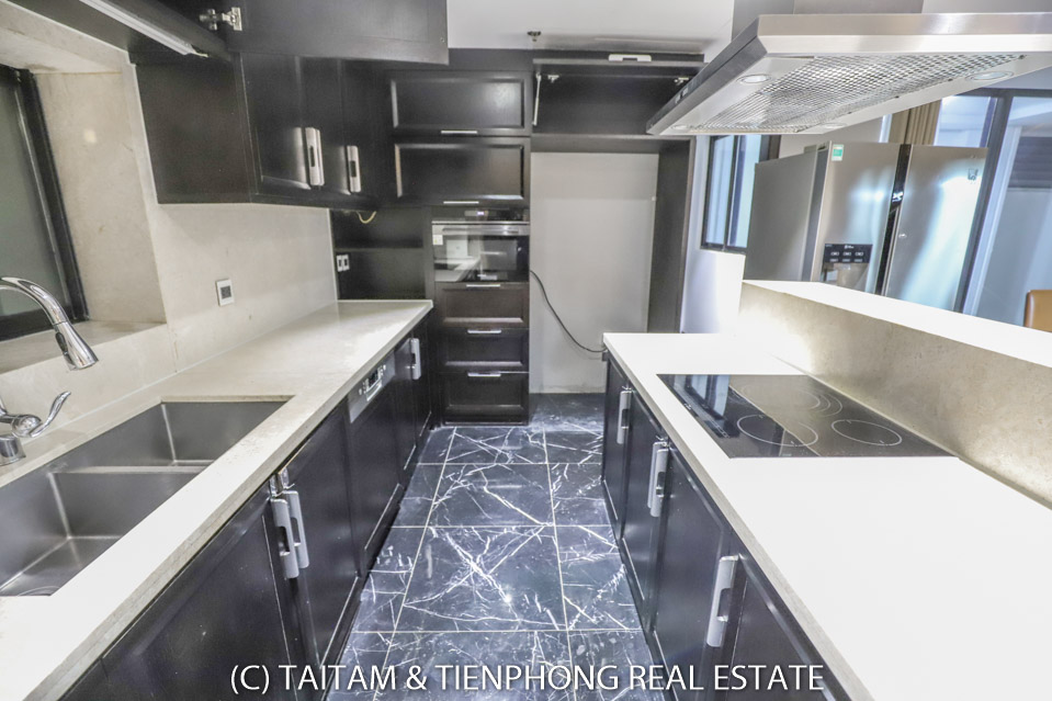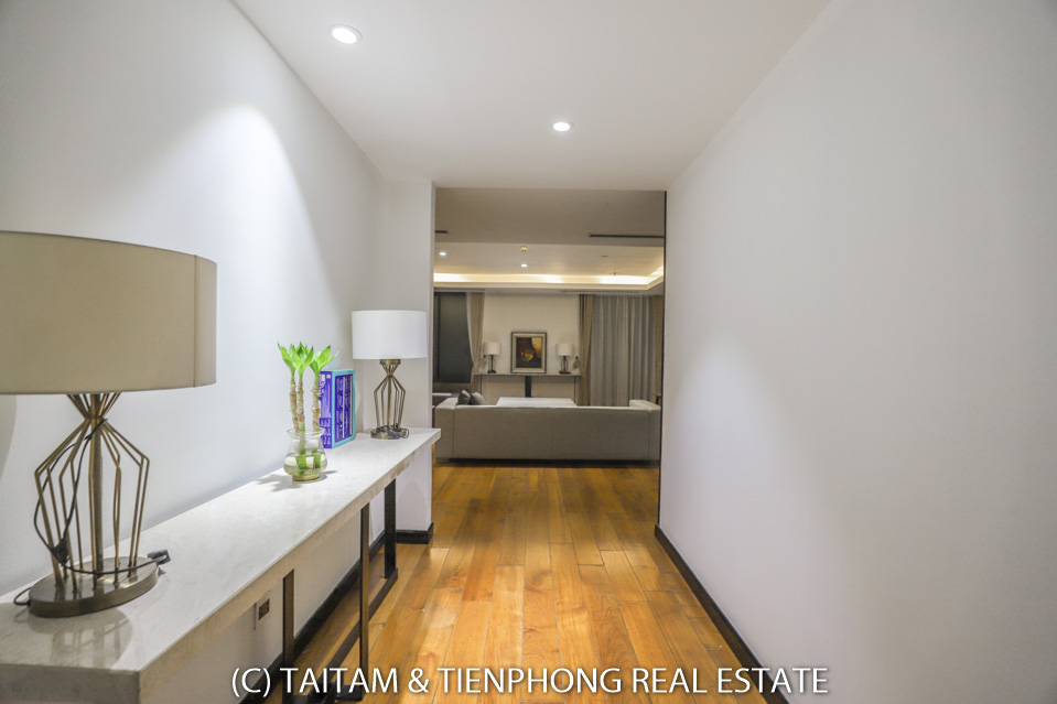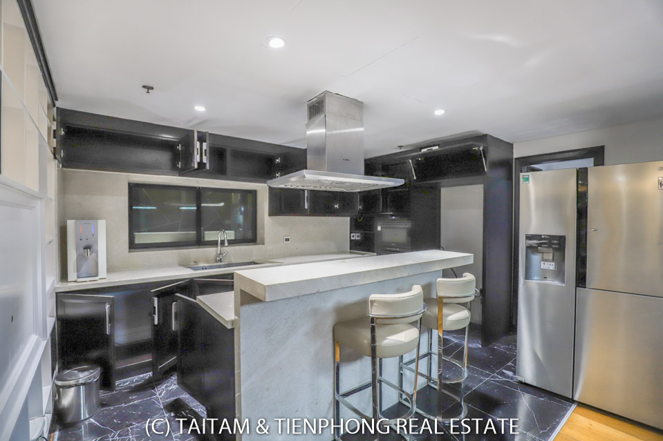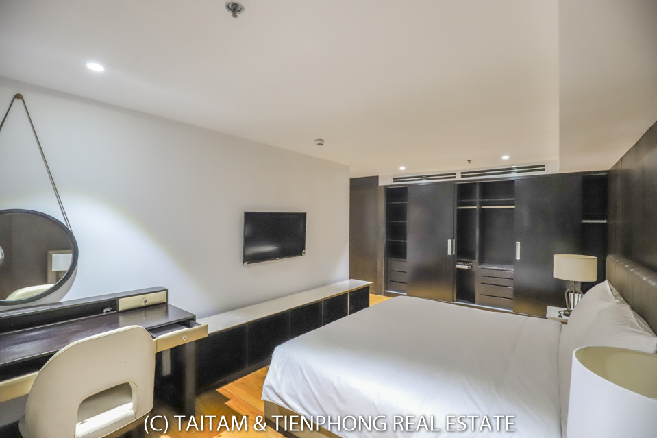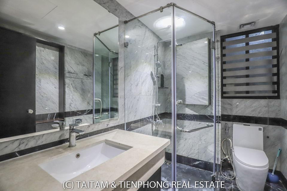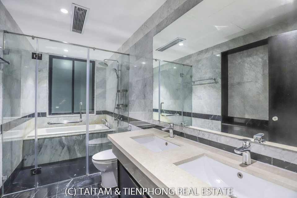 This high quality serviced apartment has a size of 200 sqm. It's living room is particularly spacious and bright thanks to its large windows. The apartment has three bedrooms and three bathrooms. The building is located at the Hoan Kiem districts, you will find easily plenty of shops and restaurants.