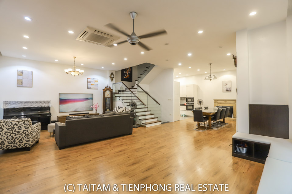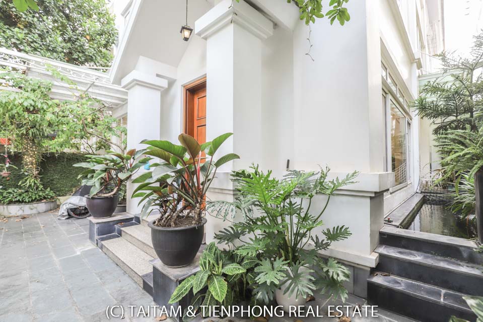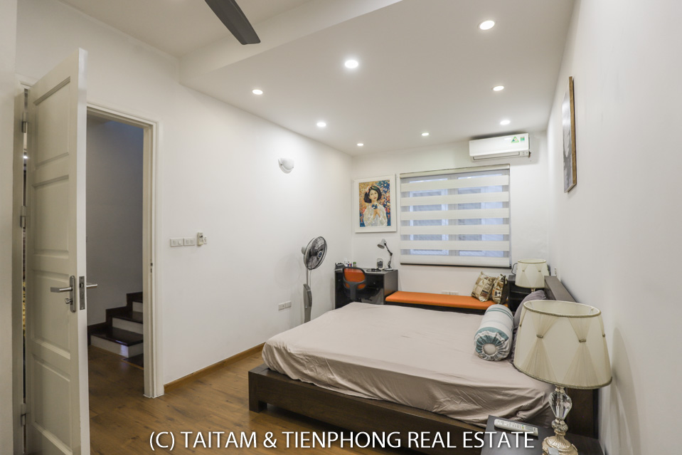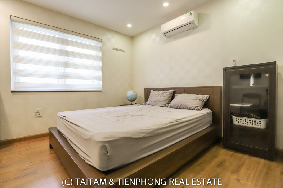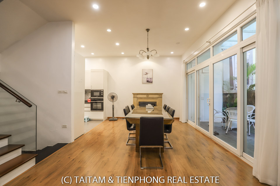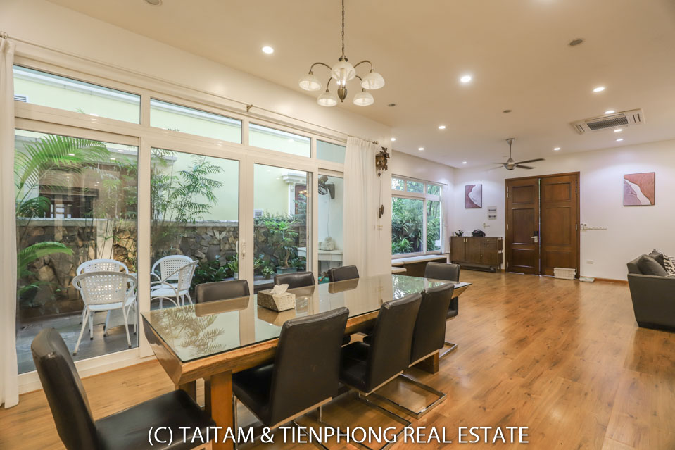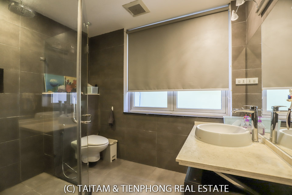 A furnished 4 bedroom villa for rent on Hoa Sua street Vinhomes Riverside. 120 sqm (land area), the house has 03 floors, 04 bedrooms, 04 bathrooms, large living area, well equipped kitchen, spacious balcony and terrace, it also has a good sized courtyard, garden, the surroundings of the house is very open, thus bring a lot of light into all the rooms.